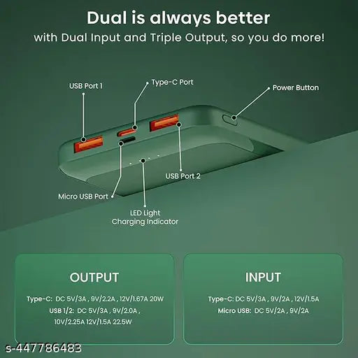 - Fast Charging: 22.5W Total Output and 20W PD Fast Charging ensures that your devices get charged quickly, with minimal waiting time.