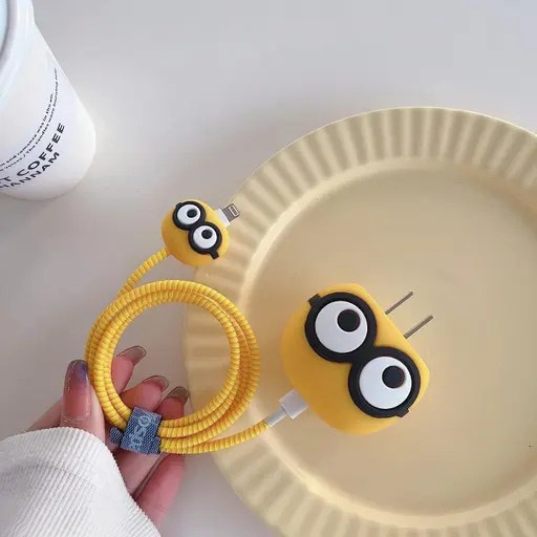 Minion 3D Silicone Charger & Cable Cover for iPhone 18W/20W Charger & USB Cable – Durable, Protective Cover for Apple Power Adapter