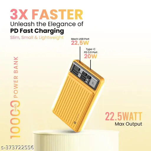 - Fast Charging (22.5W Max Output): Equipped with 22.5W Max Output, this power bank supports fast charging for your devices, ensuring that they charge quickly and efficiently. It provides Mach USB-A and Type-C PD 3.0 Output ports, allowing you to charge two devices at once.