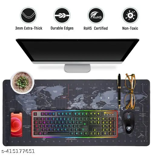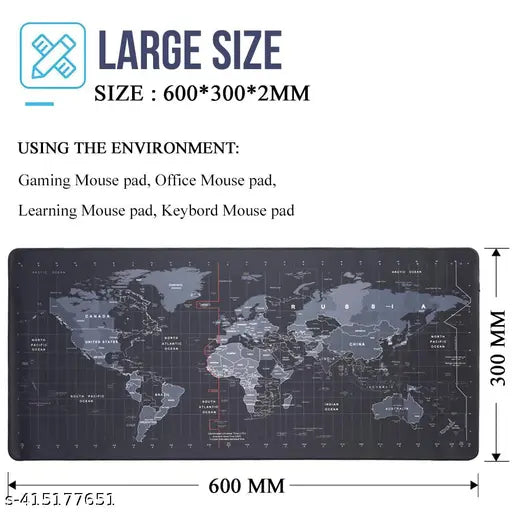 Product Name: World Map Anti-Slip Extended Desk Mat – Gaming, Rubber Stitched Mouse Pad for Laptop and Computer.